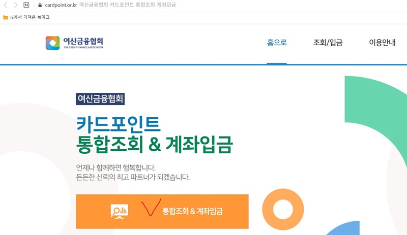 모바일이나 컴퓨터에서 "여신금융협회 카드포인트 통합조회 계좌입금" 이라고 검색합니다.