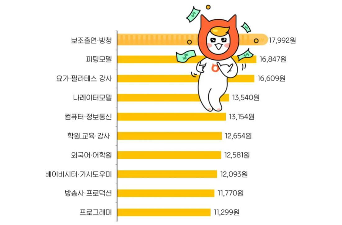 그 동안은 피팅모델이 시급 16,847원으로 가장 시급 높은 아르바이트 였는데요.