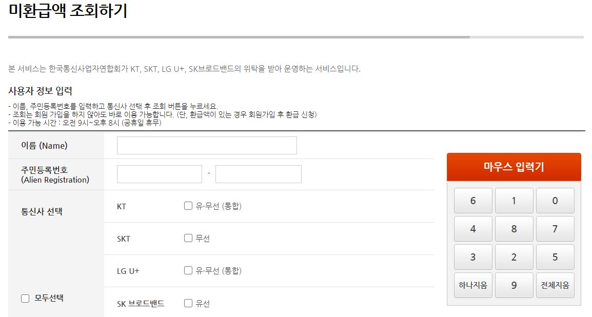 ▶ 통신비 미환급금 조회하기 사이트 바로가기 ◀